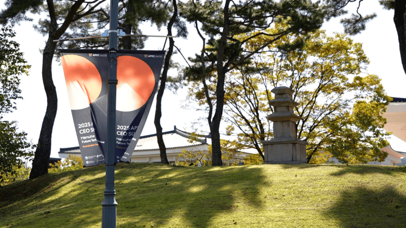时值亚太经合组织第三十二次领导人非正式会议,太合印有APEC标识的作发展新条幅在庆州随处可见。