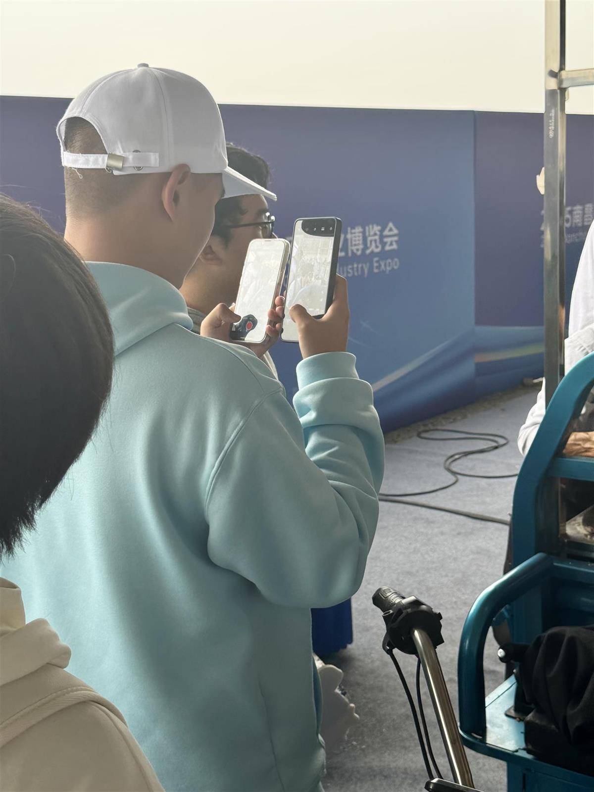 除了“鸡排哥”之外,现场最忙碌的莫过于维持秩序的志愿者们。几位守在摊位前的志愿者小哥应场外粉丝之托,帮忙拿着粉丝的手机,穿梭至最佳拍摄点,记录“鸡排哥”忙碌的身影。工作台前摆放的数台手机,仿佛成了一道别样的风景——“鸡排哥”是“做完你的做你的”,而志愿者小哥们则是“拍完你的拍你的”,场面既热闹又有序。